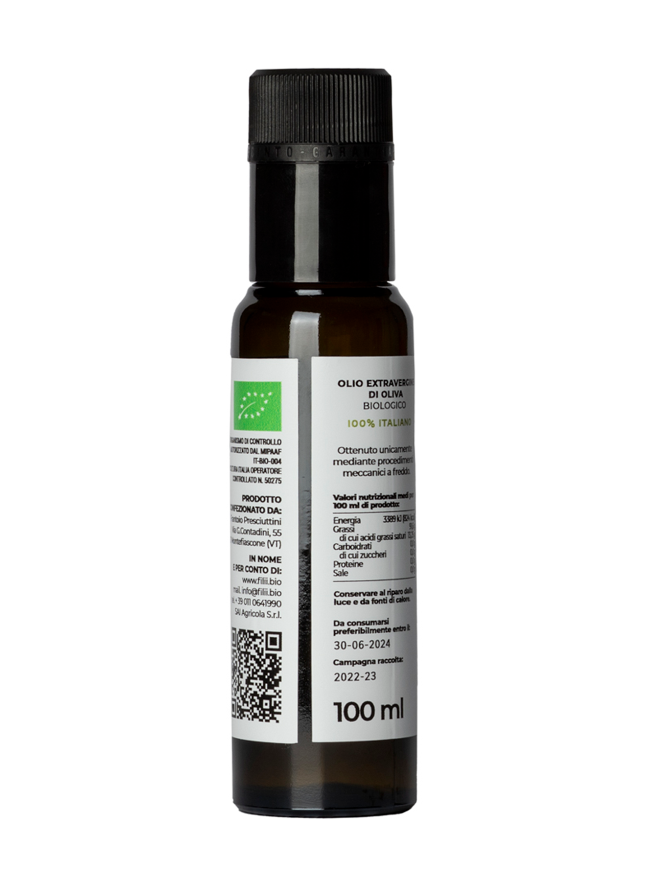 ORGANIC EXTRA VIRGIN OLIVE OIL 100% ITALIAN “FILII BIO” 100ML | FILII
